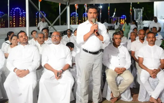 A Pirith sermon in front of the Kiri Vehera to seek blessings for the entire Sri Lankan population displaced by the sudden disaster