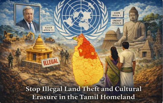 Illegal Cultural Destruction and Land Acquisition in the North-East Tamil Territory – Violation of International Law Honorable President, We, Representatives of...