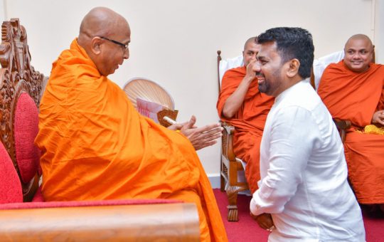 President Anura Kumara Dissanayake received blessings for the New Year from the Chief Prelate of the Sri Lanka Amarapura Maha...