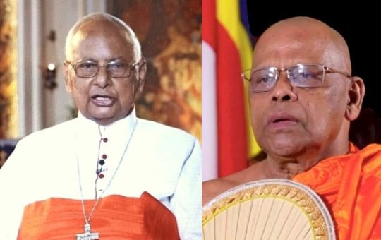 Colombo Archbishop Cardinal Malcolm Ranjith and the Chief Prelate of the Asgiriya chapter of Siam Nikaya, Most Venerable Warakagoda Sri...