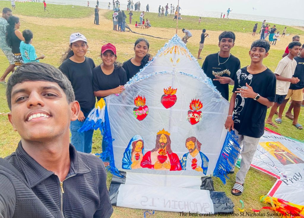 Colombo (AsiaNews) – The kite festival was a “wonderful opportunity” to fill the sky with “the beauty of faith” thanks to the images imprinted on the canopy, from Jesus Christ to the Virgin Mary, and the saints, said some children from St. Nicholas Sunday School in Munnakkara (Negombo), speaking to AsiaNews.