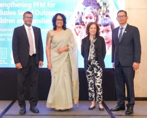 She made these remarks while addressing the two-day program on “Financing What Matters: Strengthening Public Financial Management for Inclusive Social Outcomes for Children and Families”, a Regional Knowledge Exchange held on 3rd and 4th September at NH Collection in Colombo under the EU-UNICEF Public Finance Facility. The event, implemented by UNICEF and supported by the European Union, served as a forum for dialogue between policymakers responsible for public financial management, budgeting, and expenditure processes across Asia, as well as international partners in this field.