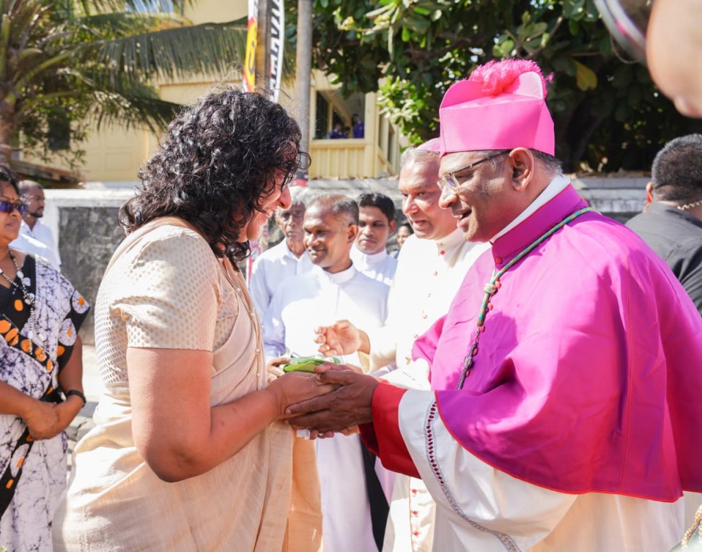 The occasion was graced by the presence of Most Rev. Dr. Jude Nishantha Silva, Bishop of Badulla, Most Rev. Dr. Raymond Wickramasinghe, Bishop of Galle; Very Rev. Fr. Michael Rajendram, Vicar General of Galle; Rev. Fr. Jude Sampath Wilegoda, Administrator of the Shrine of Our Lady of Mathara; Buddhist leaders including the Chief Incumbent of the Matara Kotuwe Ratnapala Pirivena and Maha Mantinda Pirivena, Shastravedi Panditha Ven. Indrananda Nayake Thero of Tissamaharama; Chief Incumbent of Kotuwegoda Jayasumanaramaya Temple, Ven. Yatigala Somatilaka Nayake Thero; together with the Venerable Maha Sangha, and interfaith leaders, Leader of the Opposition Mr. Sajith Premadasa, Minister of Women and Child Affairs Ms. Saroja Paulraj, Governor of the Southern Province Mr. Bandula Harischandra, along with a large number of distinguished invitees.