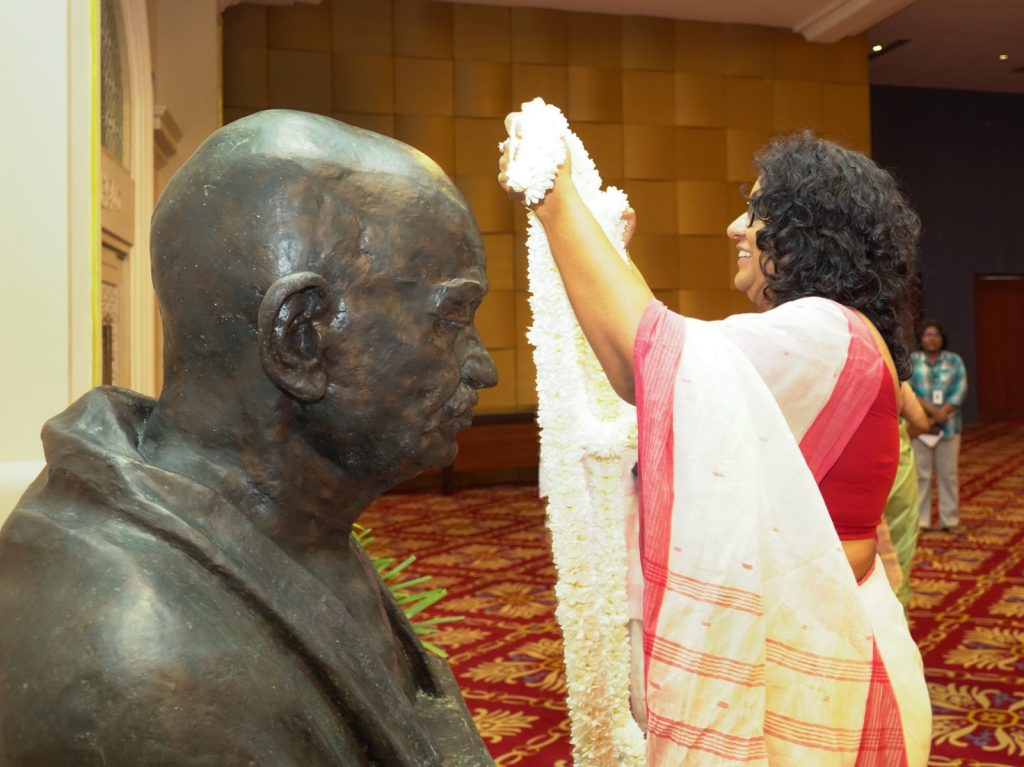 As part of the commemoration, a flower garlanding ceremony was conducted before the portrait of Mahatma Gandhi, paying tribute to his enduring legacy of peace, non-violence, and humanity.