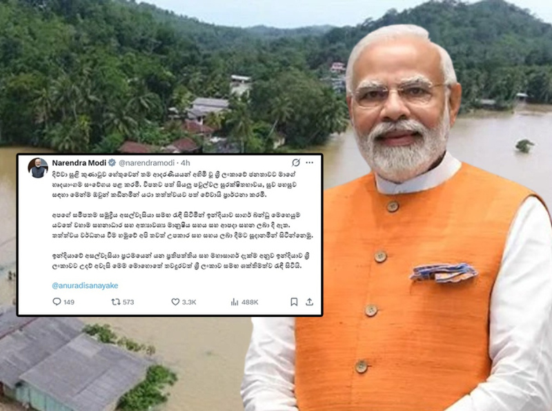 Indian Prime Minister Narendra Modi has assured Sri Lanka of India’s unwavering support during times of disaster, reaffirming the country’s commitment under the Neighbourhood First Policy and Ocean Vision.