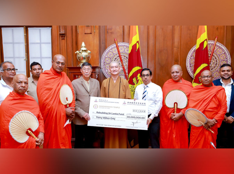 As a contribution to the Government’s ‘Rebuilding Sri Lanka’ fund established to provide relief to those affected by Cyclone Ditwa, the Hunupitiya Gangaramaya Temple in Colombo has donated Rs. 30 million.