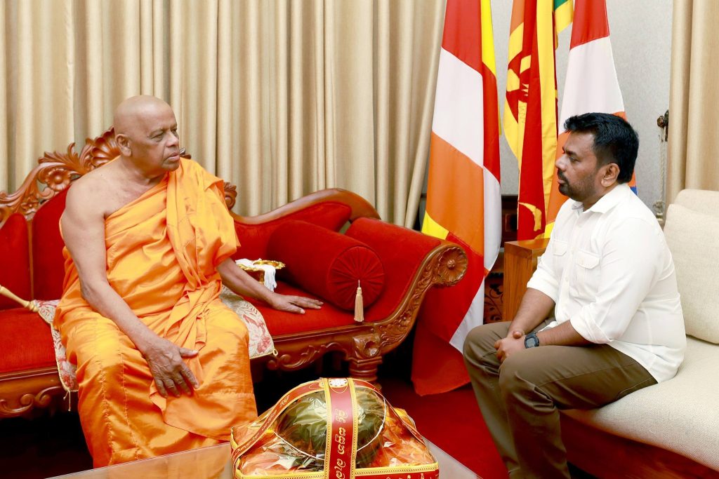 President Anura Kumara Dissanayake yesterday morning (06) visited the Asgiri Maha Viharaya and paid respects to the Mahanayake Thera of the Asgiri Chapter, Most Venerable Warakagoda Sri Gnanarathana Thera, from whom he received blessings.