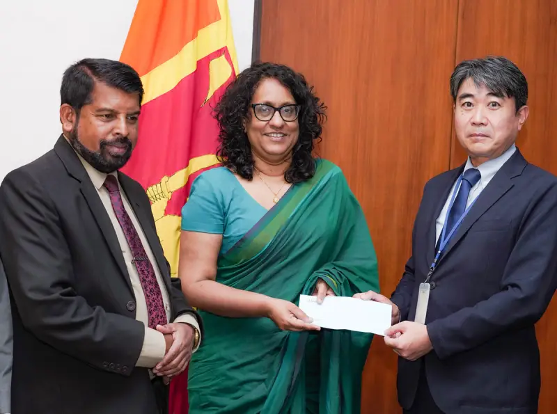 The cheque was presented to Prime Minister Dr. Harini Amarasuriya by the Managing Director of Noritake Lanka Porcelain (Pvt) Ltd, Mr. Kenji Obara, at the Parliament Complex on 18 December.