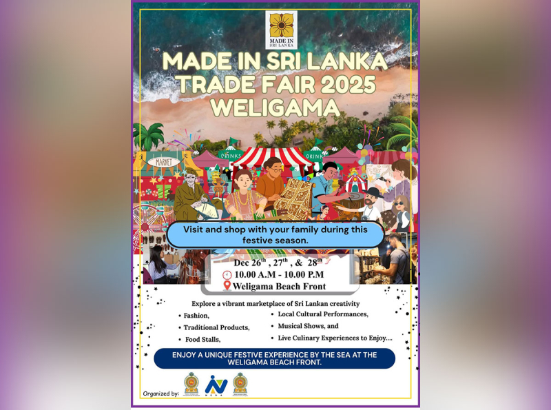The islandwide Made in Sri Lanka Trade Fair commenced yesterday (26) at Weligama Beach in the Matara District, aiming to support local entrepreneurs by providing access to local and international markets and strengthening domestic production.