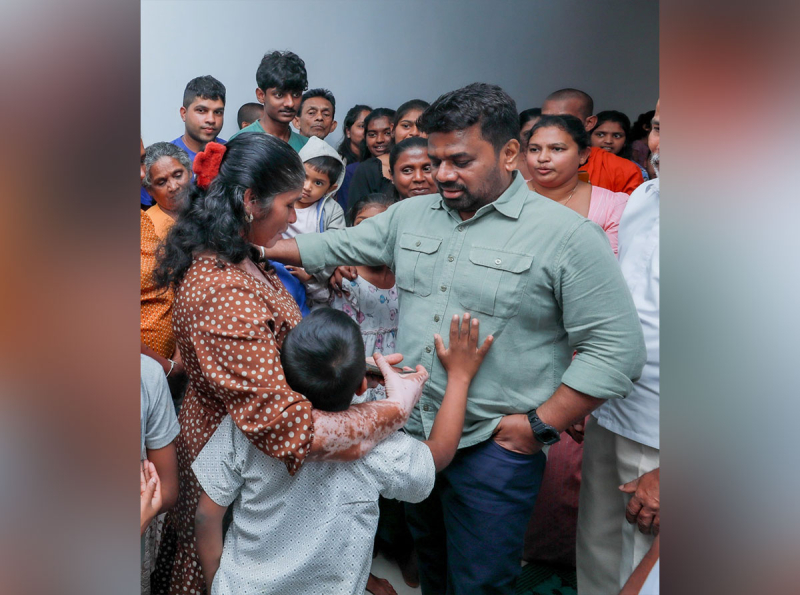 President Anura Kumara Dissanayake visited the temporary shelter operating at the Sri Sudarshanaramaya Temple, Welgala, Poojapitiya in Kandy, in the afternoon, on 01st of January, to inquire into the well-being of families displaced by the landslide in the Ankumbura, Gankotuwa area and to review ongoing resettlement efforts.