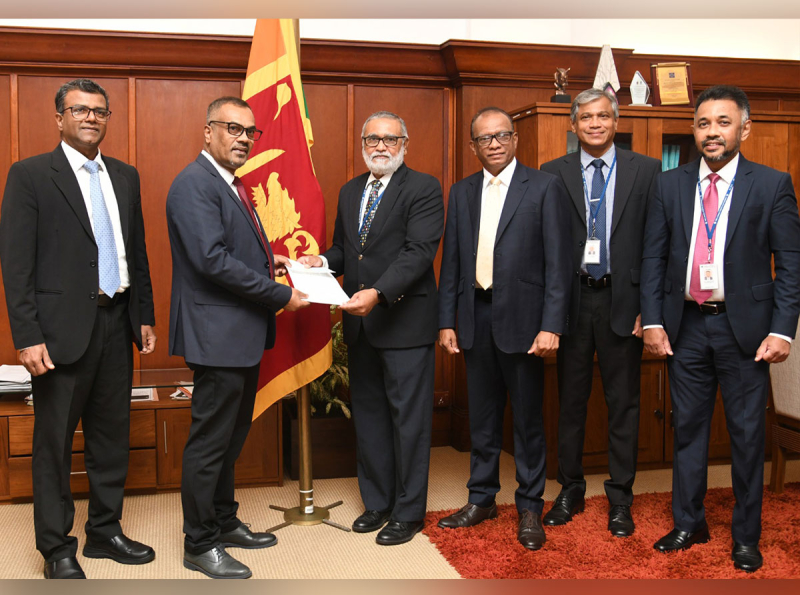 The relevant cheque was officially handed over at the Ministry of Finance premises by Minister of Ports and Civil Aviation Anura Karunathilaka, SLPA Chairman Admiral S.S. Ranasinghe, Managing Director Ganaka Hemachandra, Vice Chairman Herath Jayawardena, along with other officials, to Deputy Minister of Finance Anil Jayantha and Secretary to the Ministry of Finance Harshana Suriyapperuma.