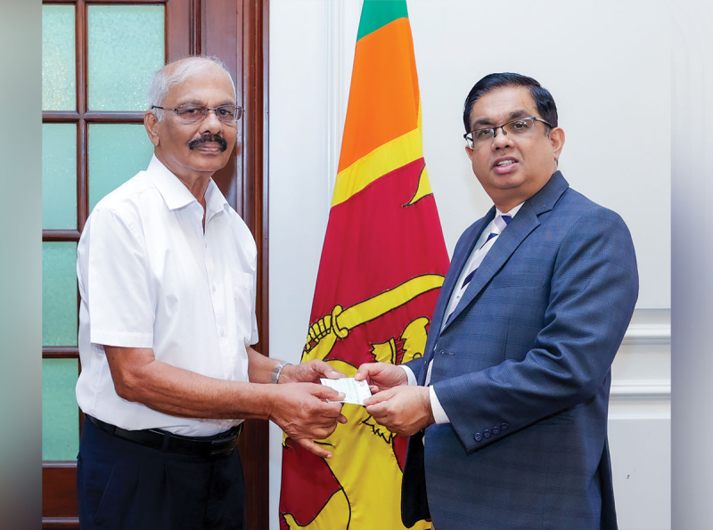 The cheque was handed over on the 27th of January, at the Presidential Secretariat to the Secretary to the President Dr. Nandika Sanath Kumanayake by Mr. M. W. Peiris.