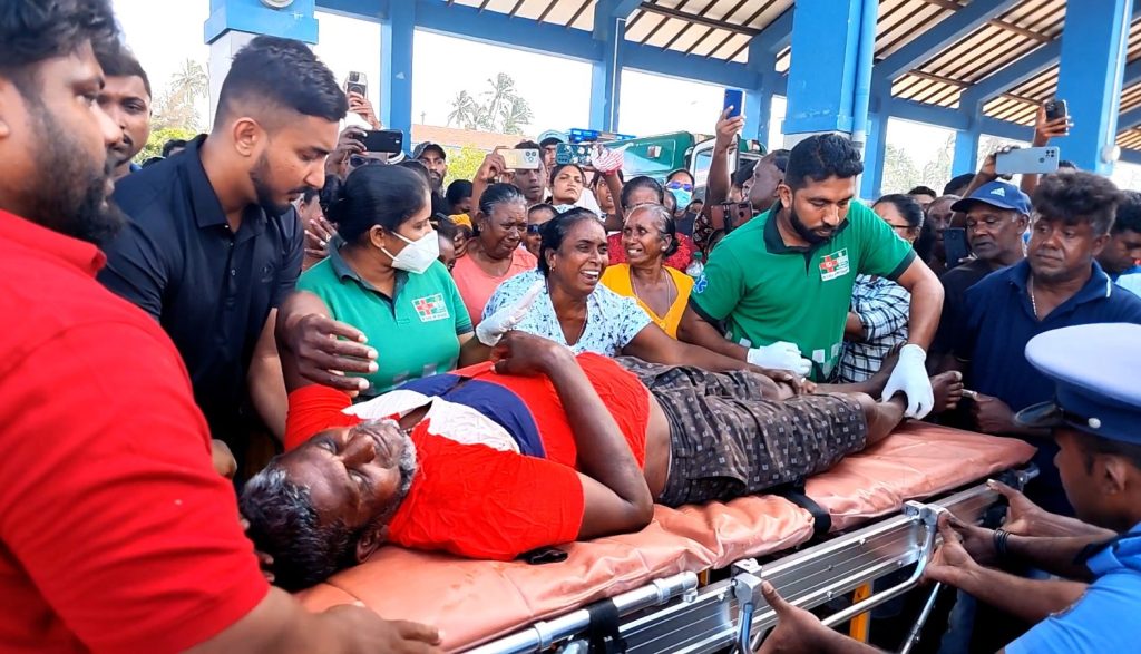 Although the four injured fishermen from Dinithi Duwa I & II were admitted to the hospital, the fishermen from the Sandun Putha fishing vessel could not be treated because it would take another 5 days for the vessel to reach Sri Lanka.